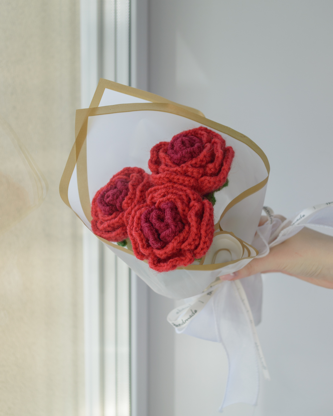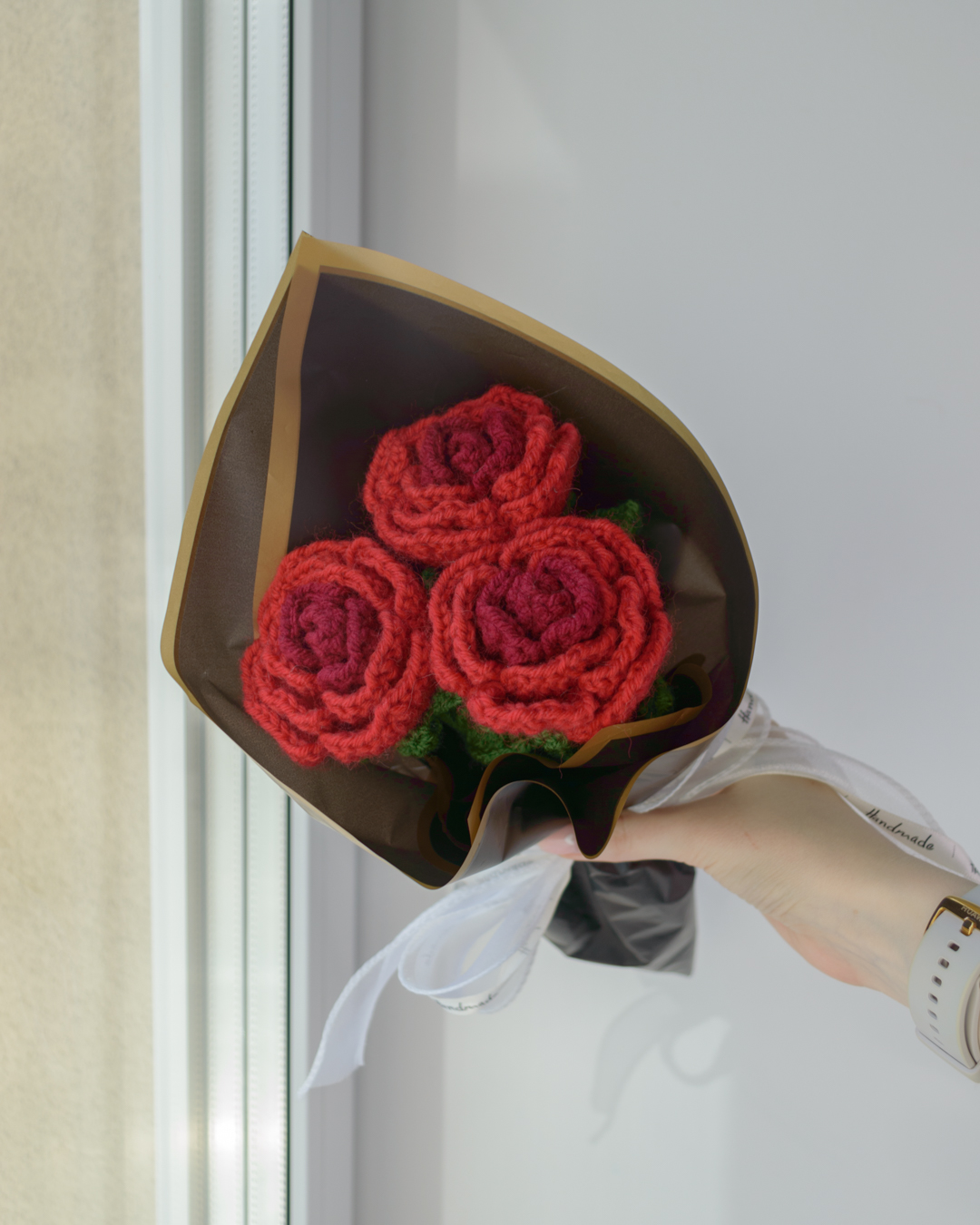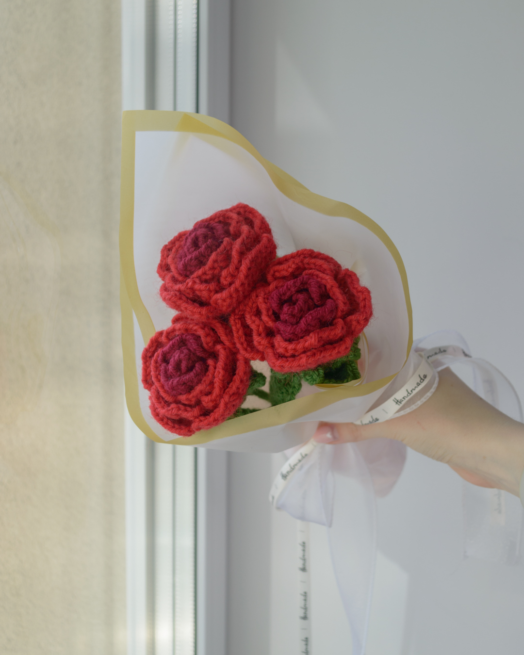Kimbus 3 käsitööna heegeldatud roosi, ühe pikkus ~30cm