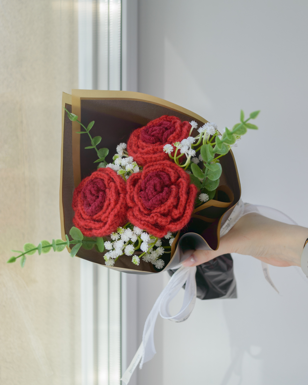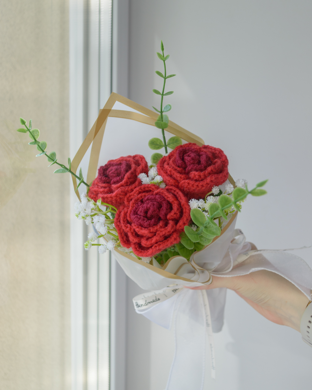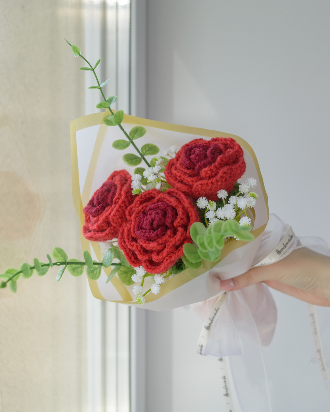 Kimbus 3 käsitööna heegeldatud roosi, ühe pikkus ~30cm