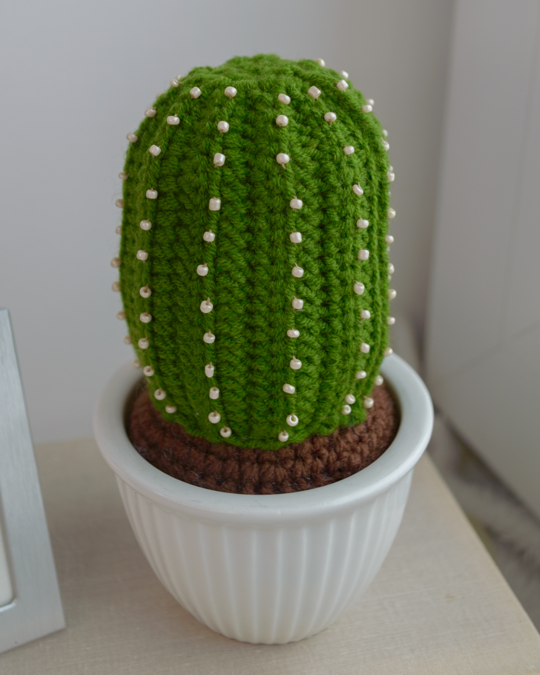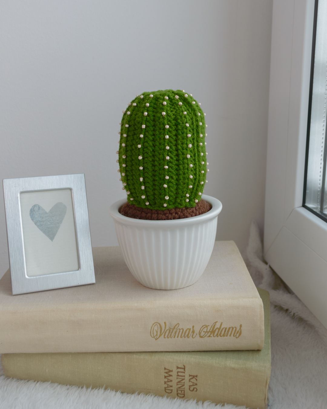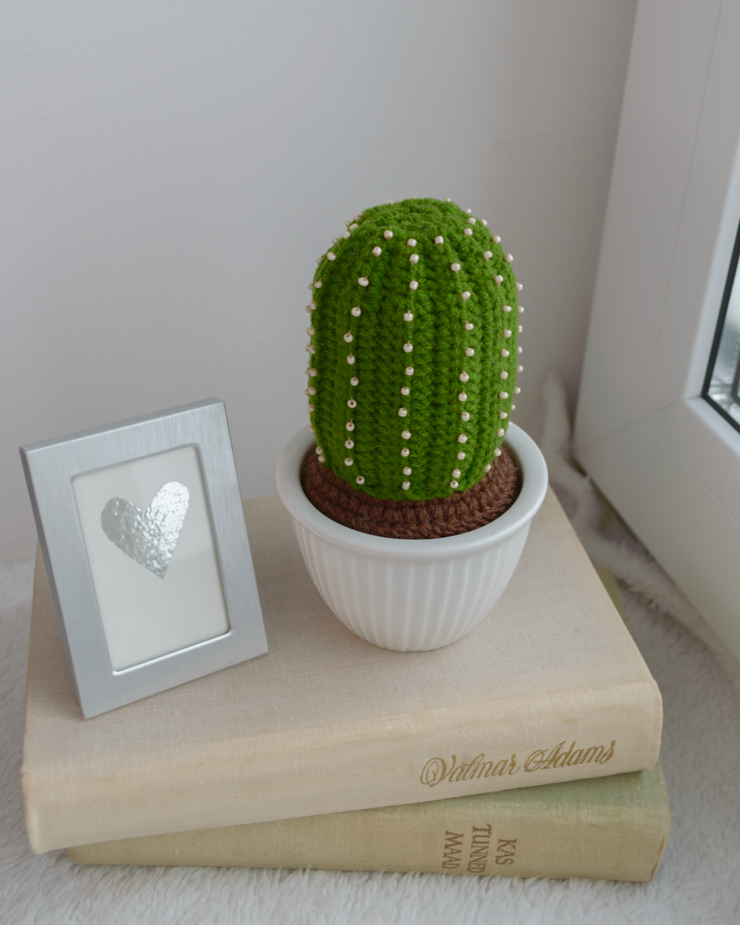 Käsitööna heegeldatud okastega kaktus