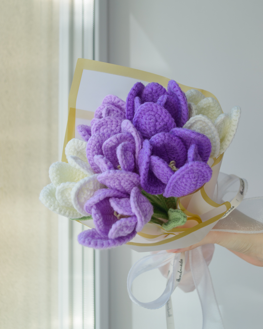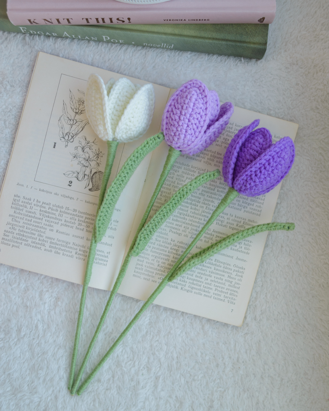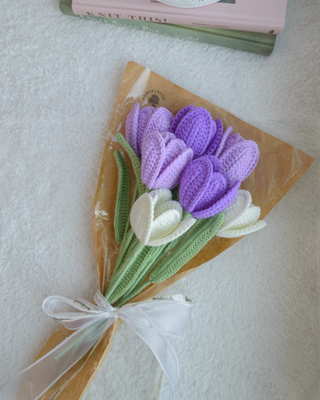 Käsitööna heegeldatud tulbikimp