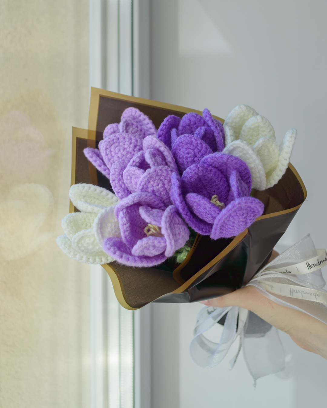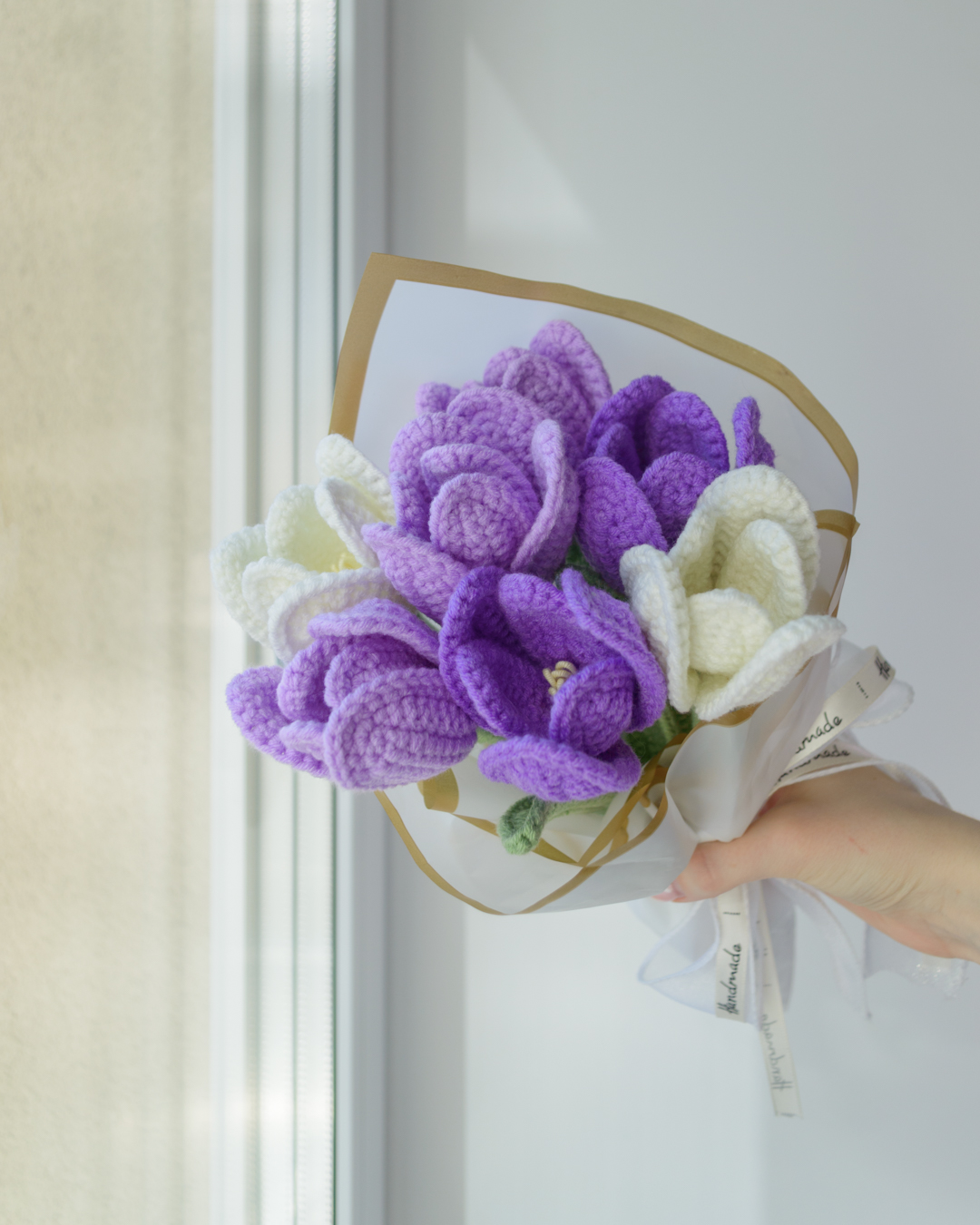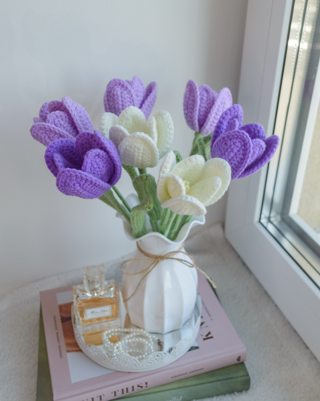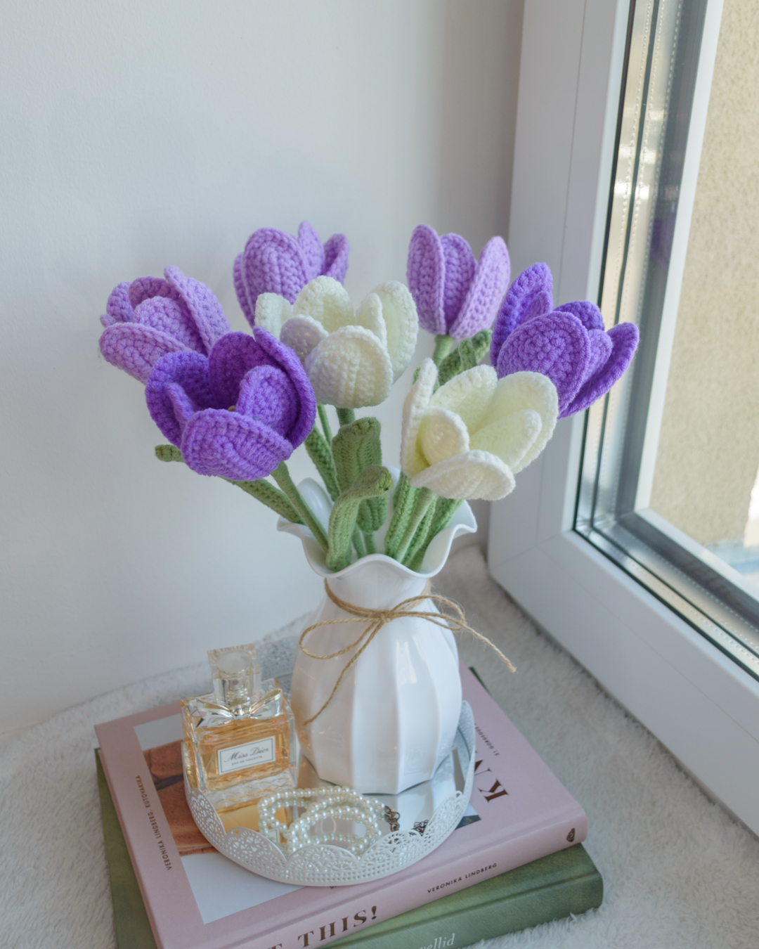 Käsitööna heegeldatud tulbikimp