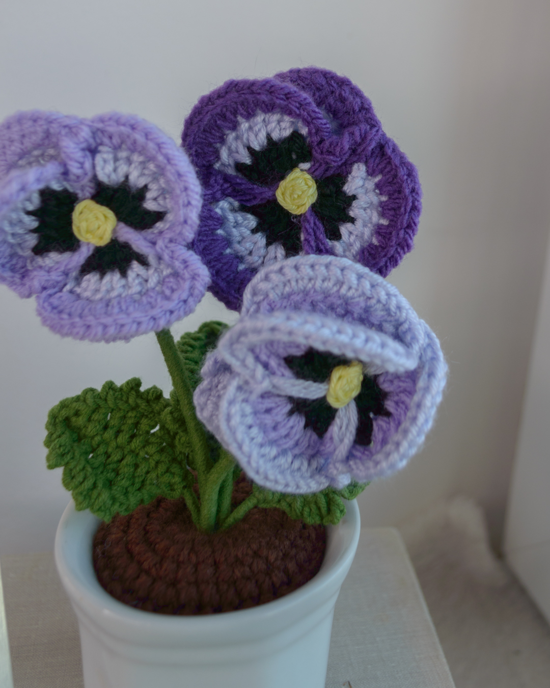 Lõng: kollane 100% puuvill; roheline 55% puuvill, 45% akrüül; lillad toonid ja must 100% akrüül