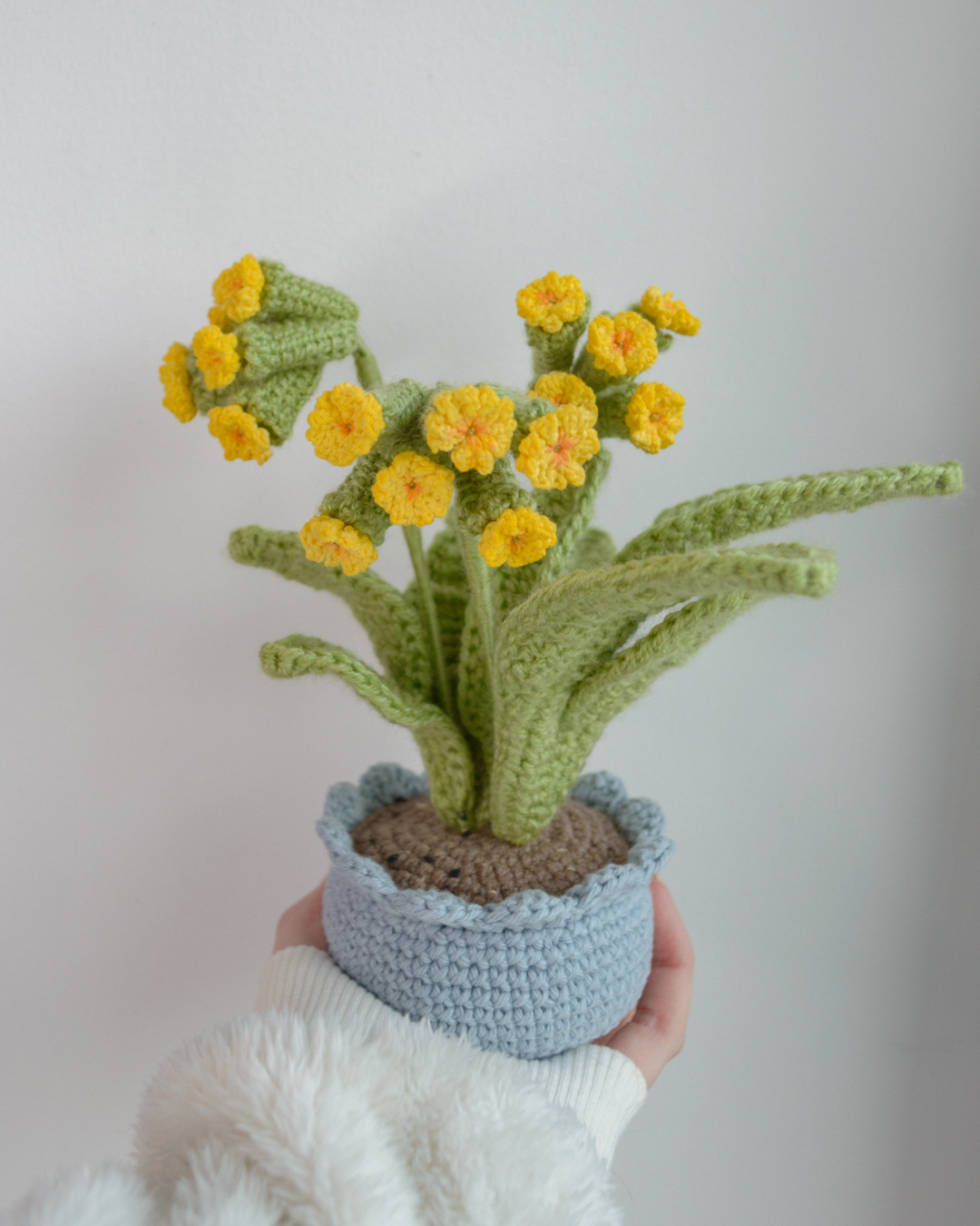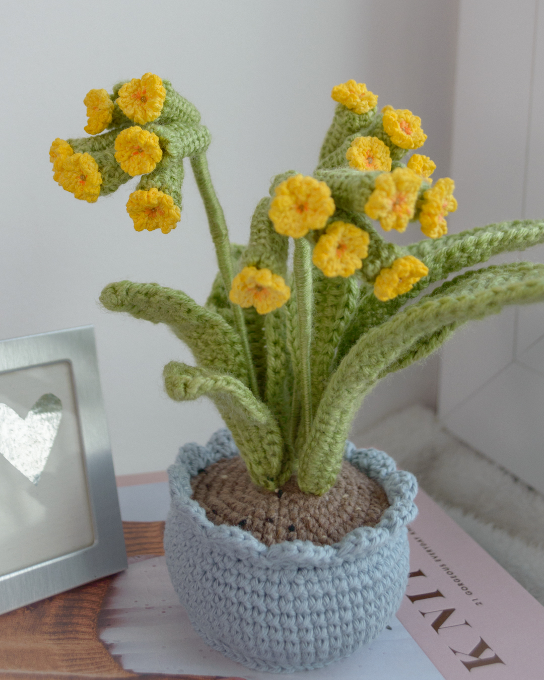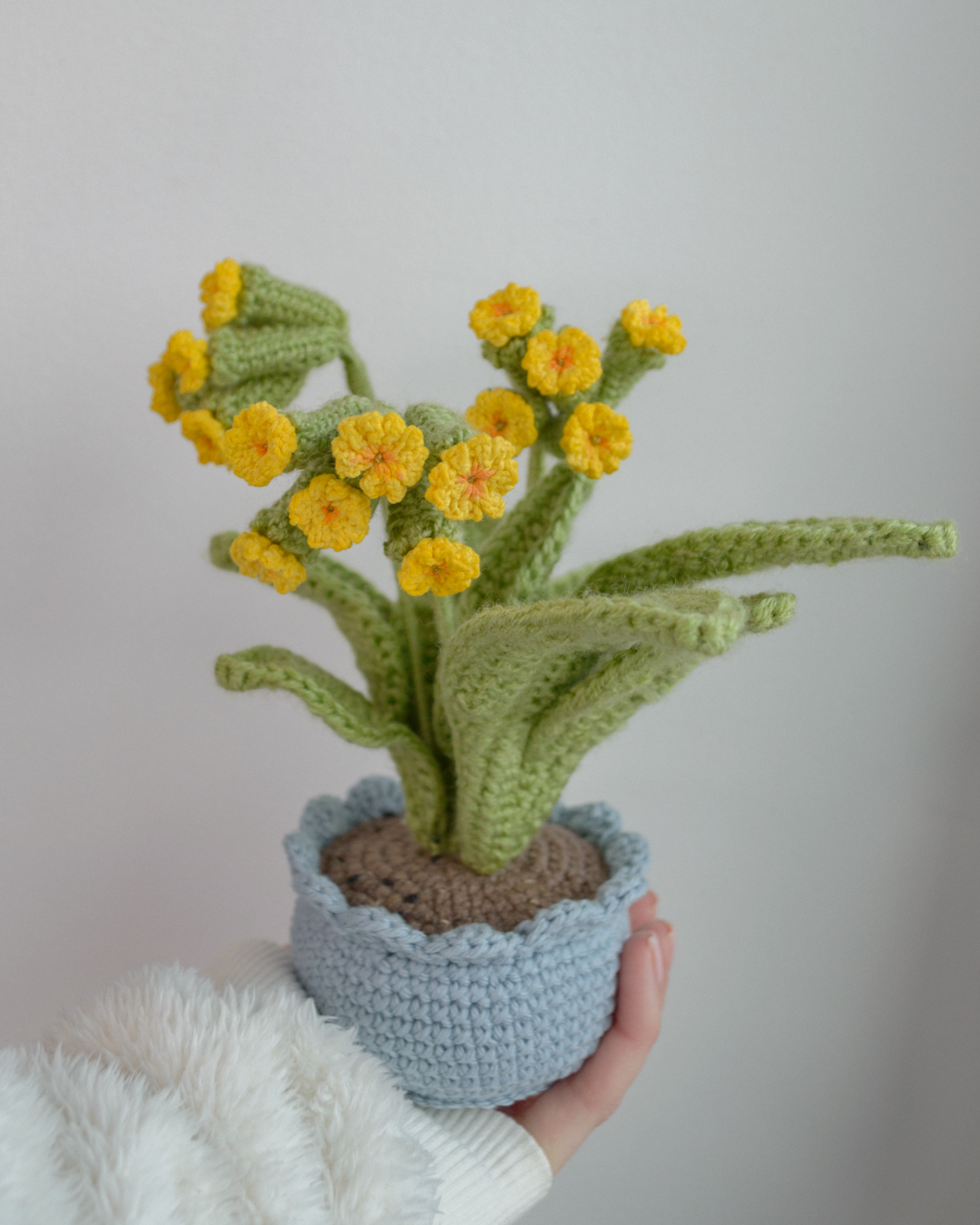 Lõnga koostis: pott ja õied 100% puuvill; lehed ja muld 100% akrüül