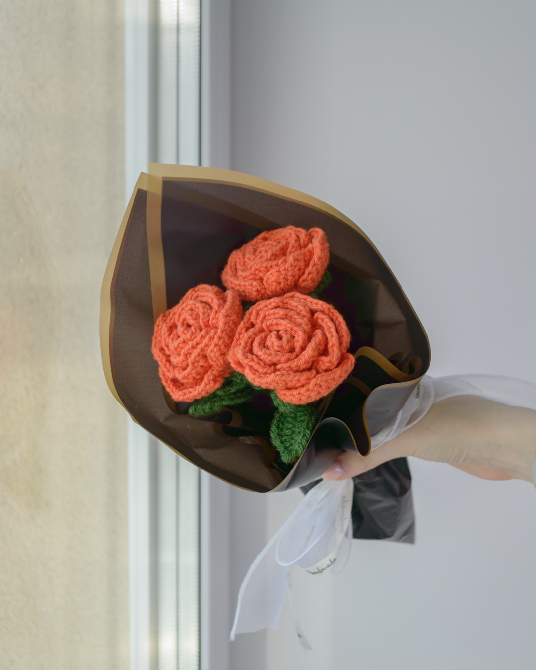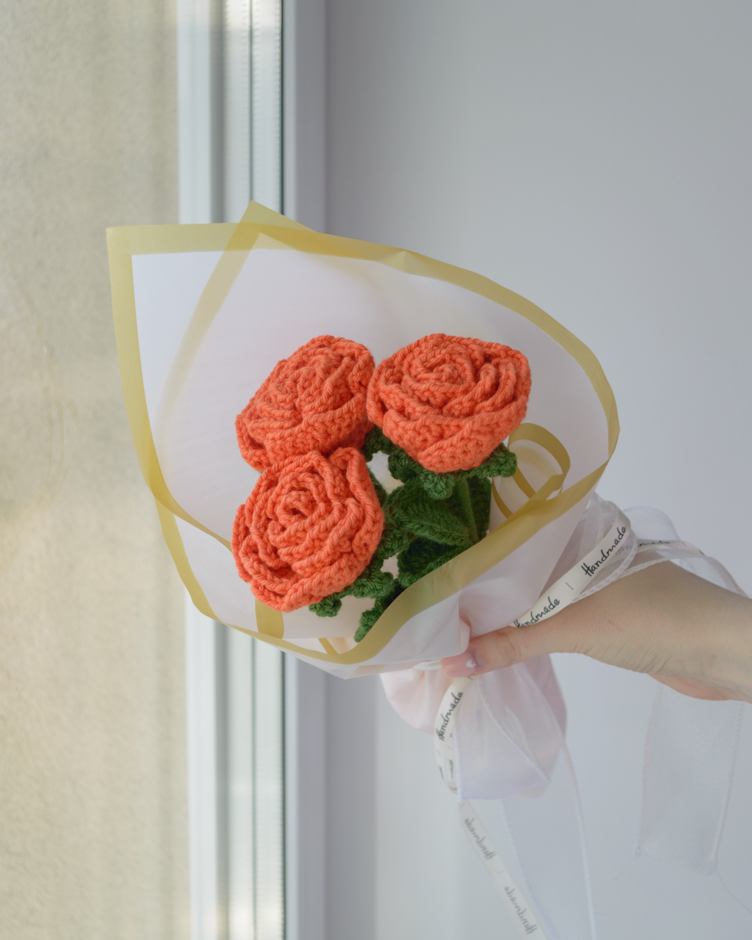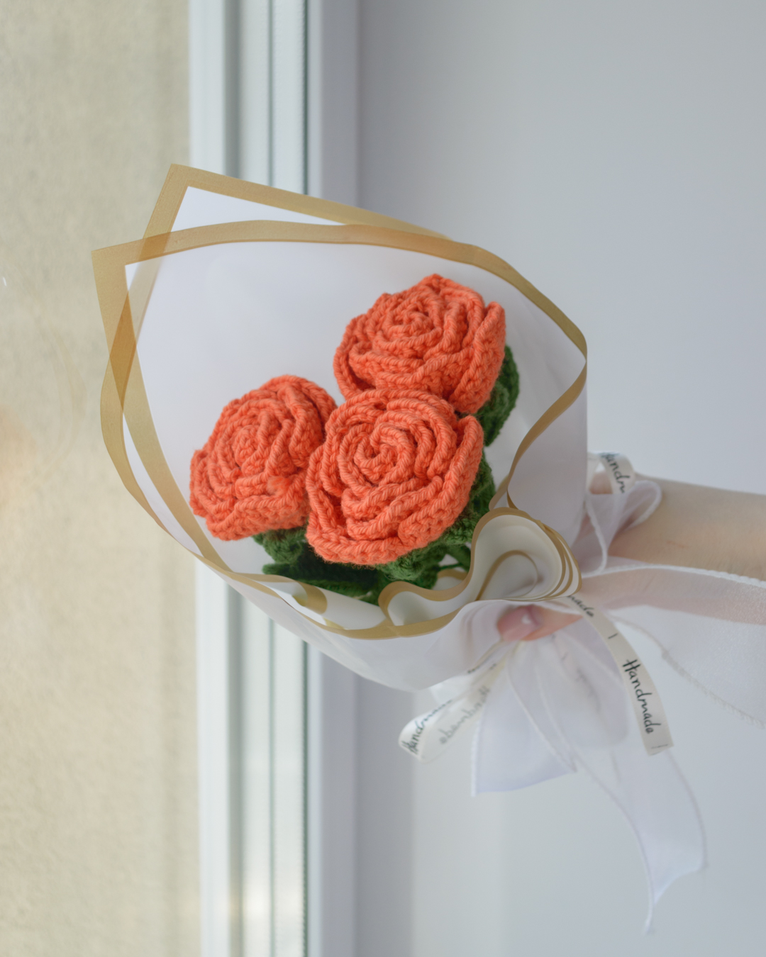 Kimbus 3 käsitööna heegeldatud roosi, ühe pikkus ~31cm