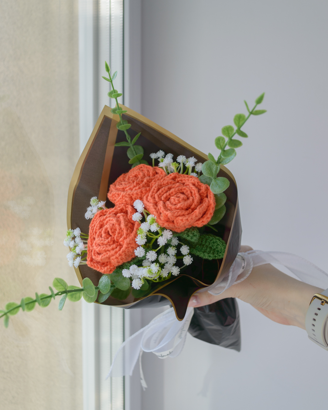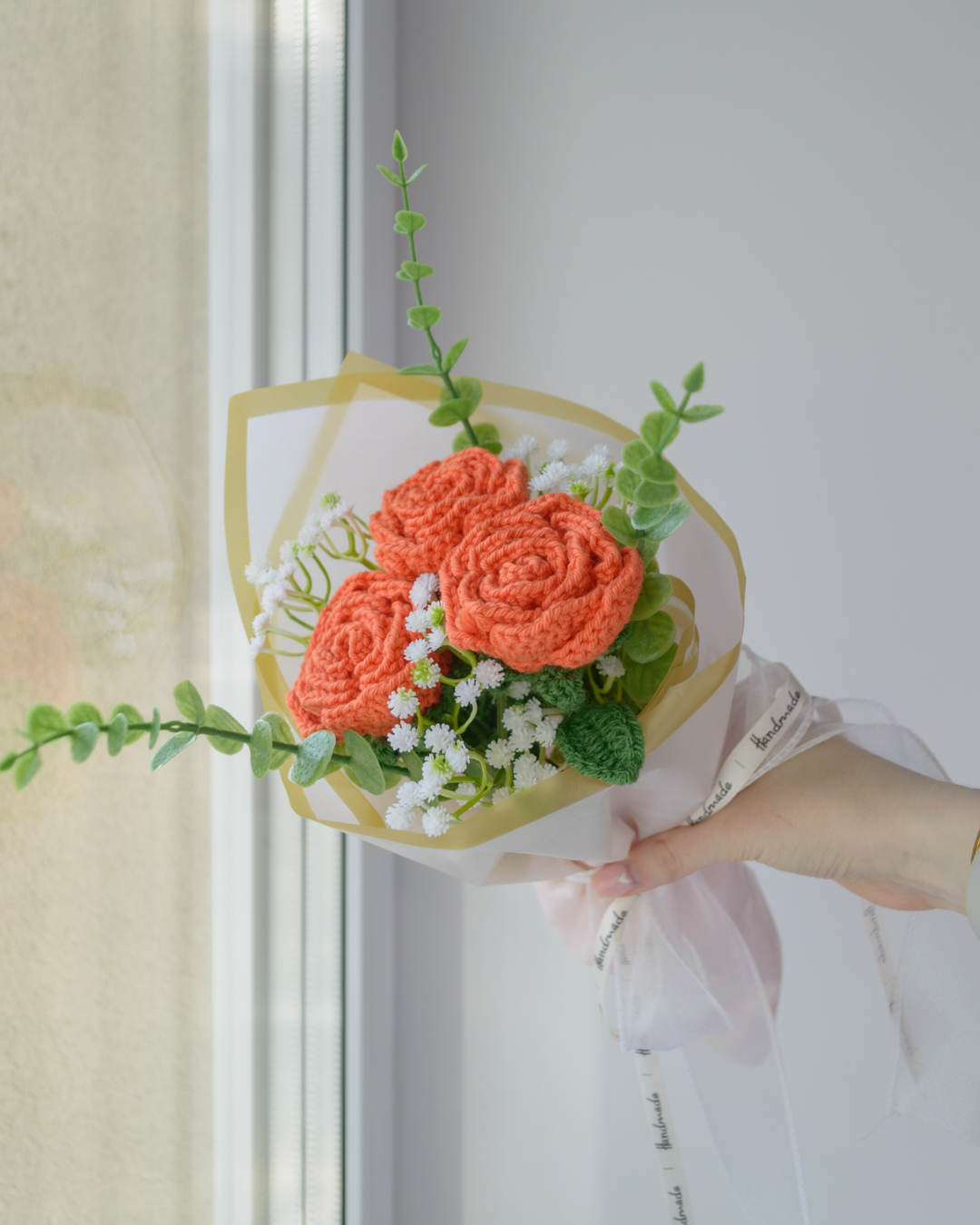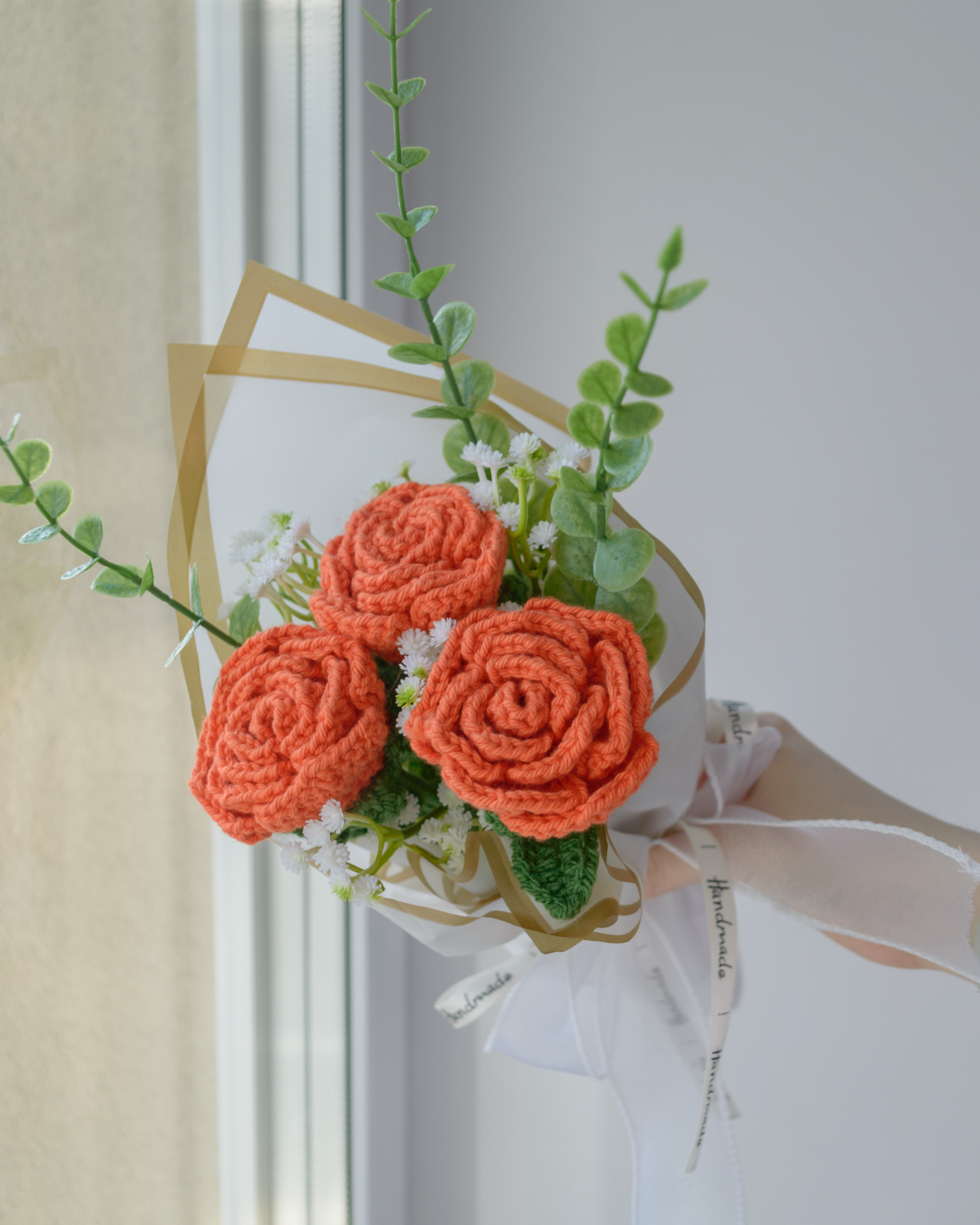 Kimbus 3 käsitööna heegeldatud roosi, ühe pikkus ~31cm