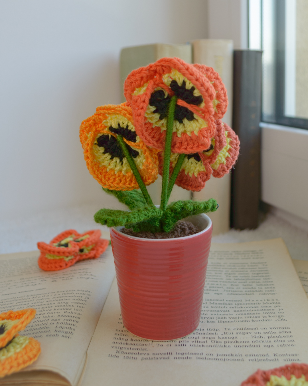 Lõng: kollane, oranžid toonid 100% puuvill; roheline ja must 100% akrüül