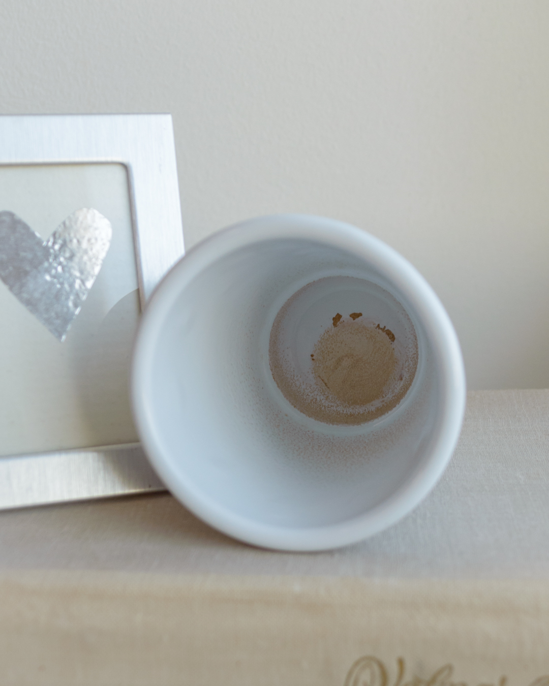 Pildil olev valge pott 6x8cm. Ostetud taaskasutuspoest.