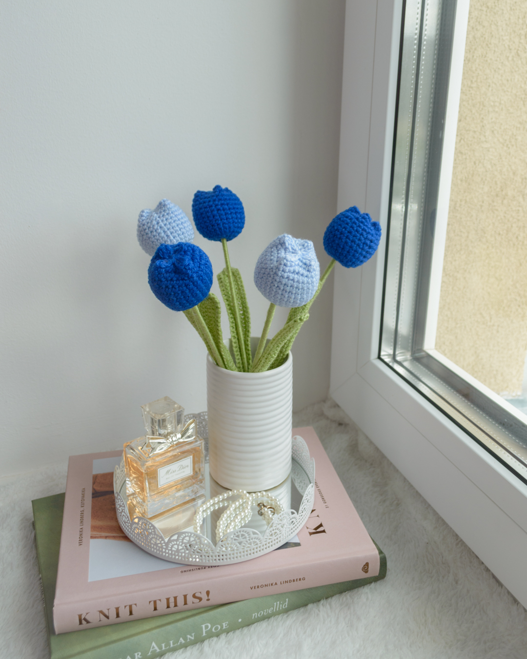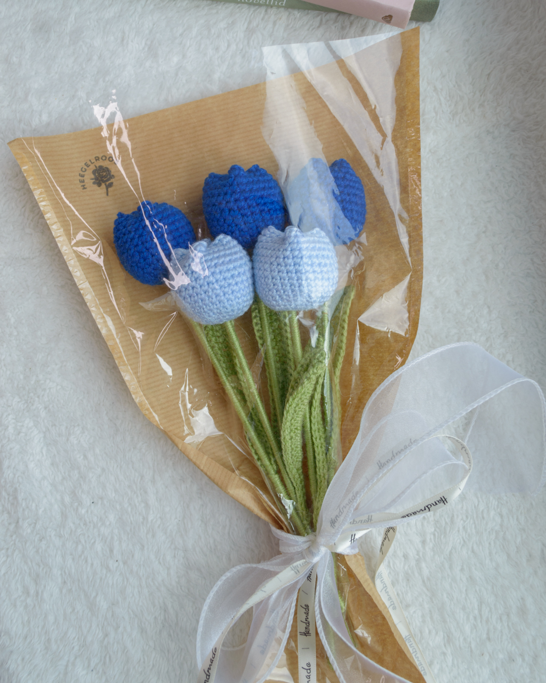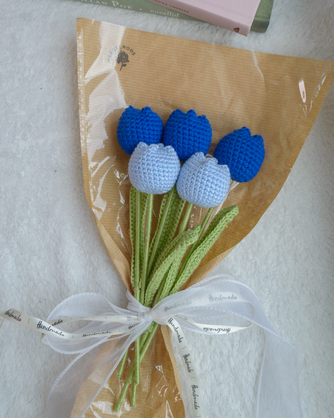Käsitööna heegeldatud tulbikimp. Ideaalne kingiidee, lilled mis kunagi ei närtsi!